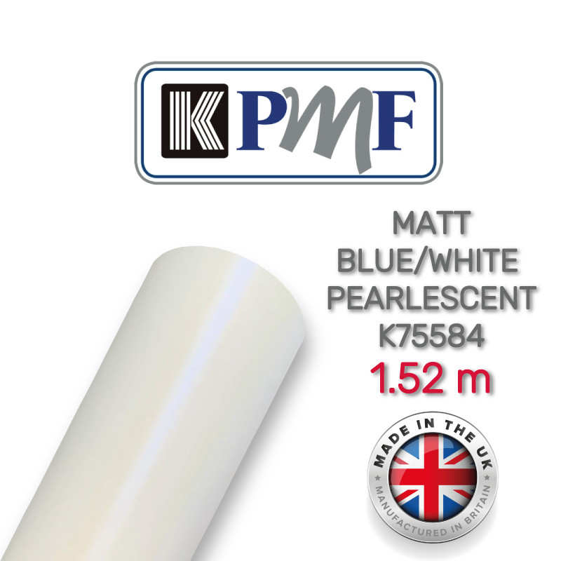 Вінілова плівка KPMF Blue White Pearlescent, біло-блакитний матовий перламутровий хамелеон K75584 належить до новітніх розроблень компанії KPMF. Плівка подвійного лиття з перманентним клеєм, завтовшки 100 мкр і мікроканалами.