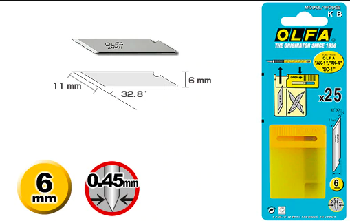 Леза OLFA спеціально виготовлені для ручного інструменту та рекомендовані для використання з ножами OLFA.